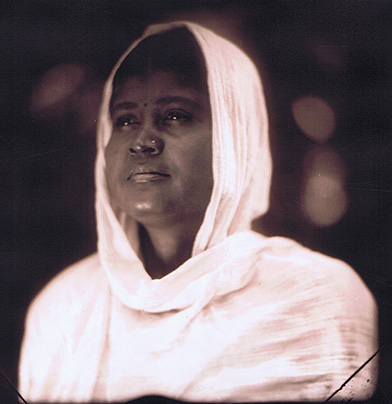 Paul is an artist on many levels. He is a tattoo artist by profession. He and his wife have been remodeling a gem of an old house and its extensive garden. The once sadly neglected property is being transformed into a home and darkroom along with an old-fashioned skylight shooting studio. Skylight studios were contemporary with Paul's Whole Plate camera and Petzval lens. He is putting his love of antique equipment together with an antique process. The learning curve is steep, but Paul is tackling it at every level. He is building his darkroom at the same time as he's been learning emulsion making. His goal is portrait photography. To that end he has something we can all envy — a willing and photogenic subject, his wife, Sumitra. Paul and Sumitra are working through different lighting setups and stagings. |