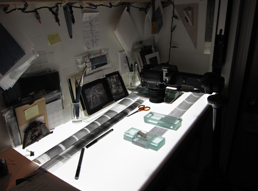 It's been a year. A tough year. The crushing responsibility of caring for an elderly family member through a long, horrific illness followed by death, and the accompanying legal labyrinth. Somewhere in the middle of it all I remembered how important it is to fit art into 'real' life. I got a little digital point&shoot to keep in my pocket. It's amazing how comforting just having a camera at hand can be. I didn't have great expectations about it as a tool for art, but I was wrong. It actually makes a great silvergum image capture camera and silvergum printing fits easily into a fragmented schedule. I've done a lot of silvergum printing this past year. But, I am very grateful to be able to get back to where I left off so many long months ago — making roll film. There must be a balance to the Universe because the whole endeavor has been nothing but serendipity and enjoyment. I jumped back in with subbing acetate film. I made a big batch of sheets and almost all of them turned out great, but my husband begged me to quit. He absolutely hates the smell of acetone and acetic acid. (I love it. No accounting for taste!) Turns out he did me a huge favor. I went searching for a commercial product and found one that succeeds beyond expectations. It's Dupont's Melinex 535. 535 is "a high clarity polyester film that is two-side pretreated to promote adhesion to aqueous based coatings." Unlike corona discharge treatment, chemical subbing doesn't have a finite lifespan and there's no danger of fogging an emulsion. I made an emulsion coating well with a 2-inch cavity to use with a five-inch puddle pusher. The coating procedure is the same as for paper.