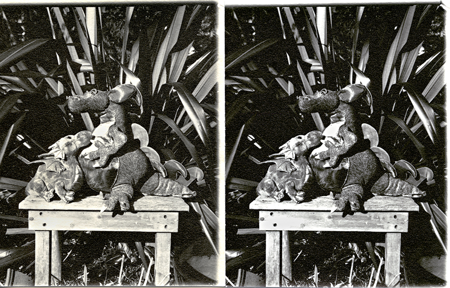 Also, gaslight paper tones beautifully in selenium. I don't personally aim for a lot of color change, but I love the slight additional depth the toner produces (not to mention the archival boost selenium toning delivers.) If you are planning on toning, adjust your exposure so that the wet print looks ever so slightly underexposed. Dry-down and toning will bring the maximum black back to where you want it. I also was able to get a little more light into the mid-values without sacrificing maximum black. The print on the left was toned in 10% Kodak Rapid Selenium Toner for about a minute.